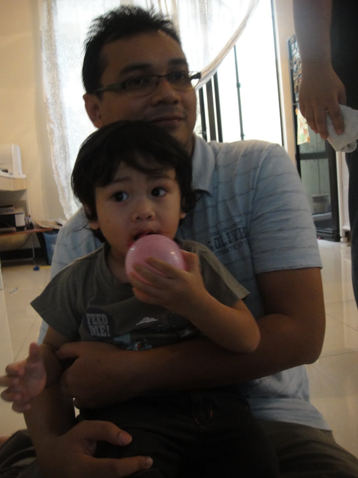 At the party, Aidan was so excited to see the inflattable bouncer, and being one concerned mom, i found it a little bit dangerous for my Aidan to join the kids, jumping in it.. But Aidan was smiling and laughing to see them, and i forced myself to trust him, and let him play along.. He was the smallest kid, and had a pretty great time, jumping here and there with his fellow neighbours- friends! And he got to mix around quite good and pretty fast! Oh my, he is one big boy now.. :) But bila nampak other kids quite rough with each other, mummy quickly grabbed him out.. And we decided to go home..